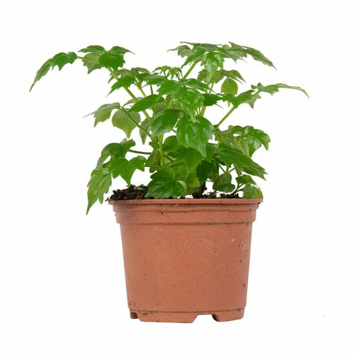 An English Ivy, Hedera helix ‘Gold Child’ sports mid-green, heart-shaped leaves, that are adorned by pretty golden borders. Aside from being ideal for adding cascading movement (and unique greenery!) to a room, this Ivy is very easy to grow where it has proudly achieved the Award of Garden Merit. Although vigorous when grown outdoors, the wonderful thing about an indoor Ivy plant is that you can appreciate the cascading foliage without it becoming too unruly.