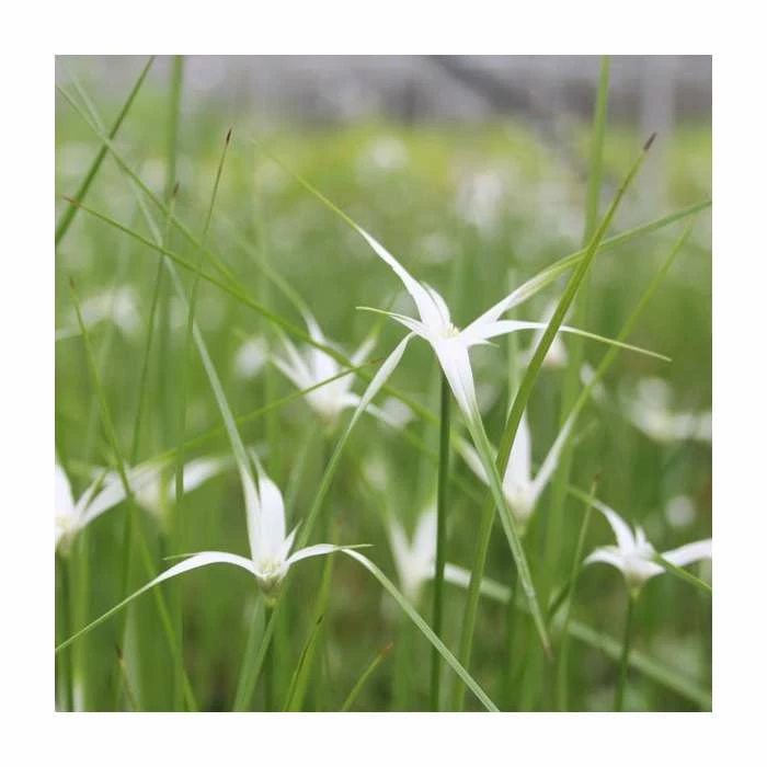 ‘White Star Grass’ is a tender, aquatic Sedge. It produces tufts of bright green stems, which are topped with white, star-shaped flower bracts
