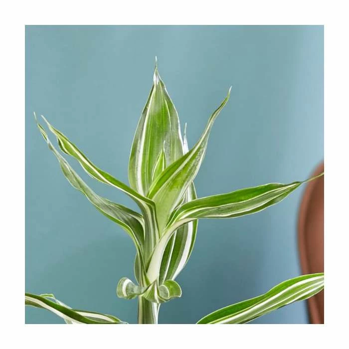 Dracaena plants contain around 200 different varieties with some wild specimens growing to heights of over 50 feet! As houseplants, they are often easy to care for and great for beginners. This Marginata variety comprises a tall stalk with an explosion of variegated leaves on top. The long skinny sword-like leaves are a dark shade of green with a slight red hue on the edge. Dracaenas are excellent for adding beautiful foliage to a room with minimal effort. Dracaenas are also excellent plants for purifying the air, named by NASA as one of the best.